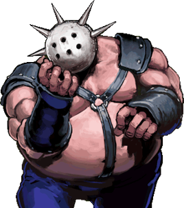 | “ | A former heavyweight-class wrestler who achieved fame in the underworld circuit. Due to the immense strength he has shown during his professional career, he was barred from competing in betting matches, so he was scouted by the Shadow Warriors after his retirement. He now roams the streets of the underworld as a member of a criminal organization. Usually wears an armored helmet mask to conceal his plain face. | „ |